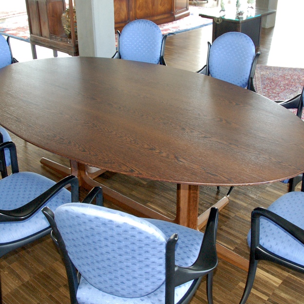 Bei diesem schönen Schreibtisch wurde die Oberfläche der oberen Schreibplatte sowie die des gesamten Fußgestells aufwendig abgeschliffen, nach Absprache mir dem Kunden neu gebeizt und anschließend mit hochwertigem Klarlack endbehandelt.