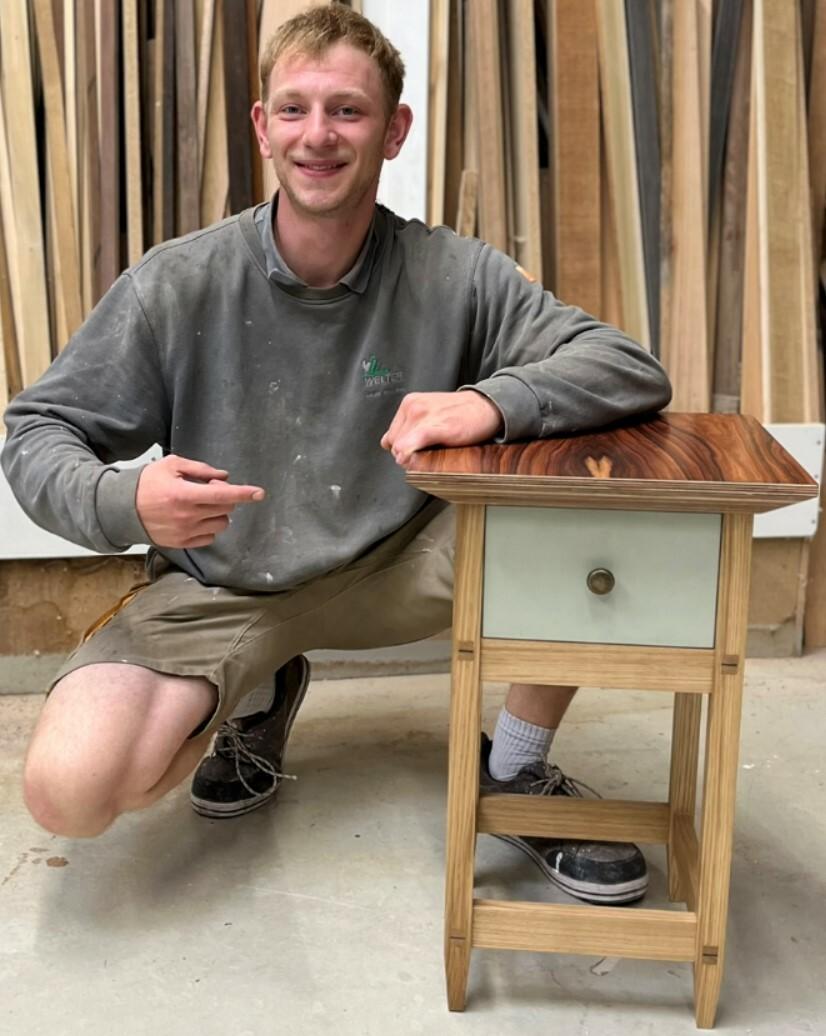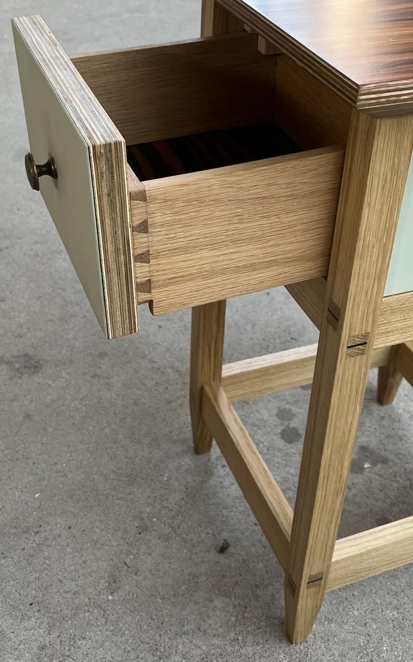 Der Beistelltisch wurde im Rahmen einer Projektarbeit gefertigt. Das Thema in diesem Jahr lautete "Keil".