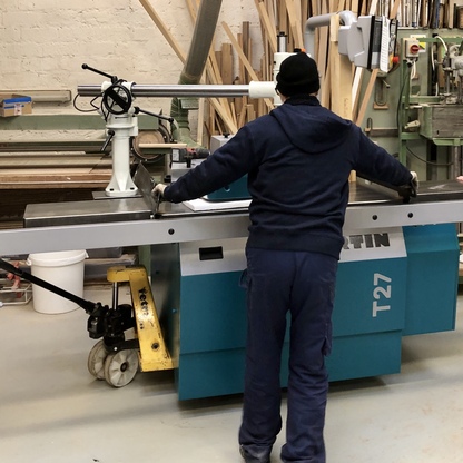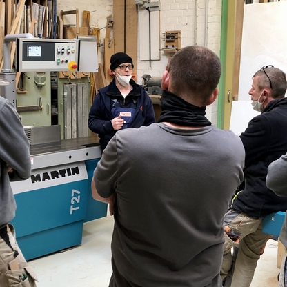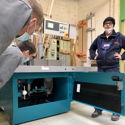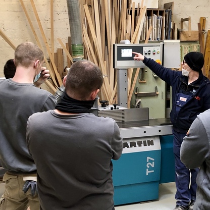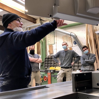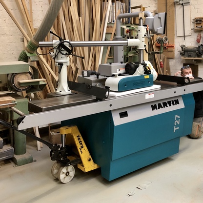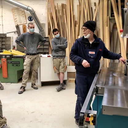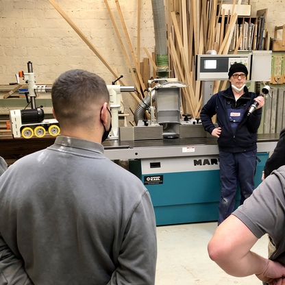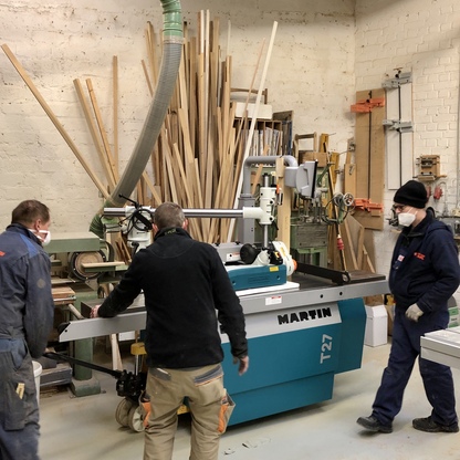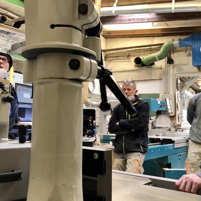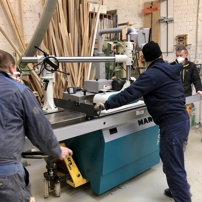 Diese Art von Fräsmaschine zählt im Tischlerhandwerk zu den Standardmaschinen, auf die man wirklich nicht verzichten kann. Sie wird wortwörtlich täglich gebraucht und genutzt. Um so schlimmer war für uns die Tatsache, dass die Lieferzeit 3 - 4 Monate betrug. Im März 2021 war es dann endlich soweit. Die folgenden Bilder zeigen, wie die Maschine ihren Bestimmungsort findet. Im Anschluss sehen Sie die Einweisung in die moderne Frästechnik durch den erfahrenen und allseits beliebten Herrn Ralf Kowald, Mechaniker unseres Maschinenhändlers.