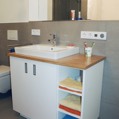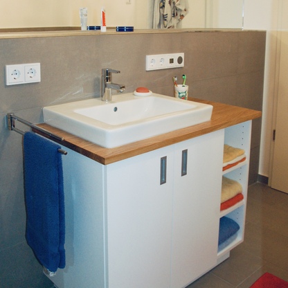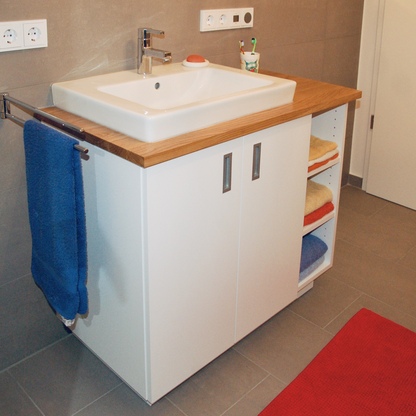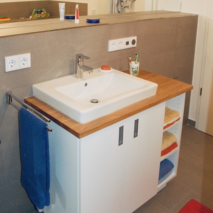 Oberfläche deckend weiß lackiert, Platte aus massivem Eichenholz, natur versiegelt