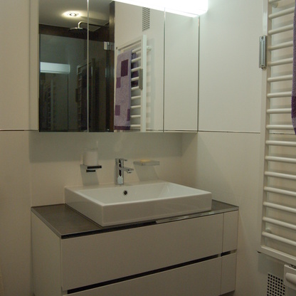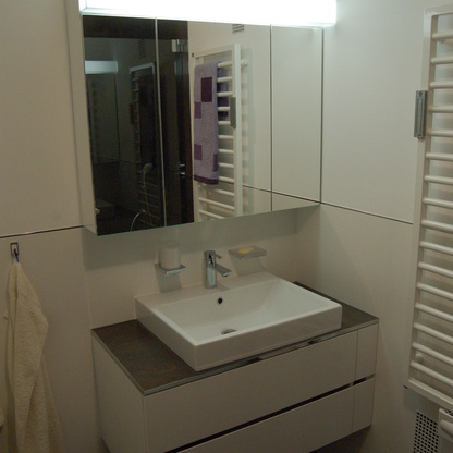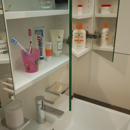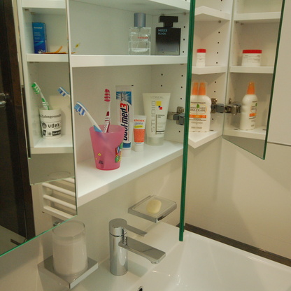 • Spiegel dreigeteilt, mit hinterbautem Schrankraum