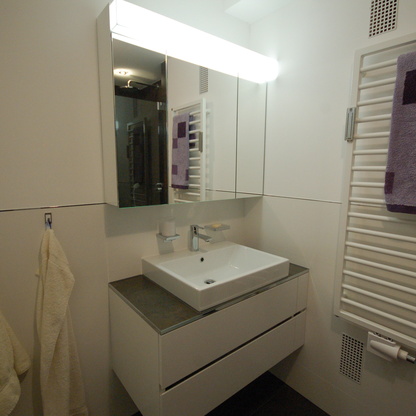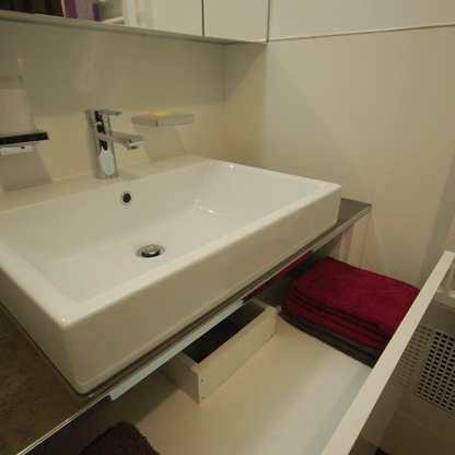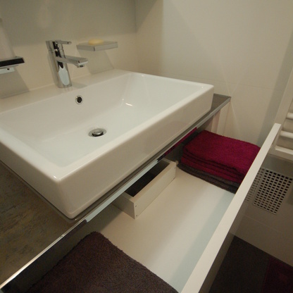 • Waschtischplatte aus Keramikfliese (Bodenfläche) mit Umrandung in Chrom