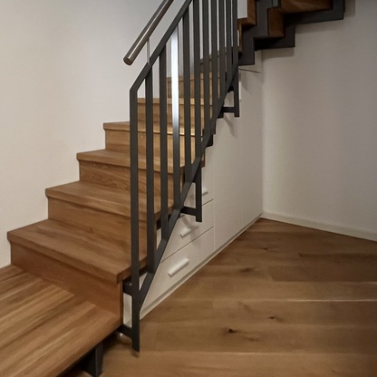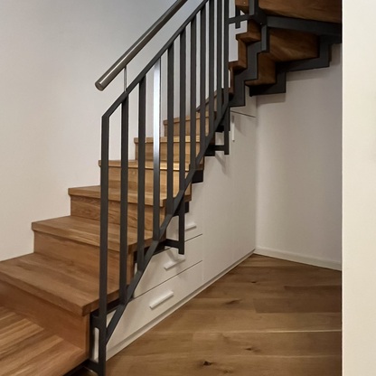 • Stufen auf vorhandene Metallunterkonstruktion angepasst und montiert