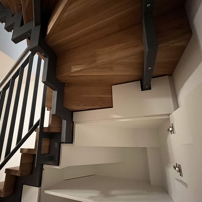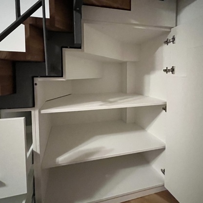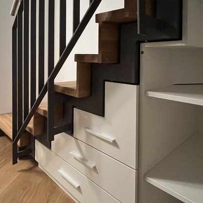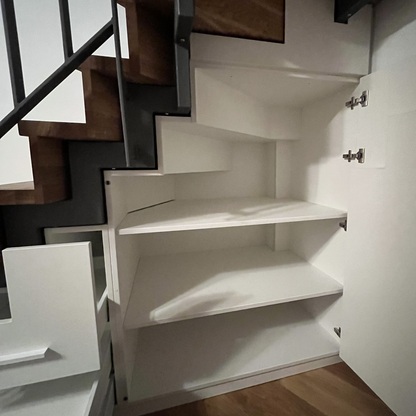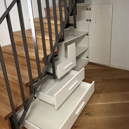 • Auszüge und Schrankkorpusse exakt unter dem Treppenlauf eingearbeitet