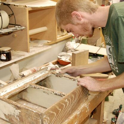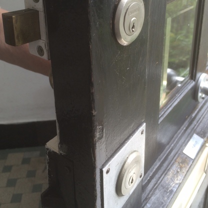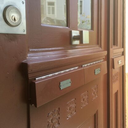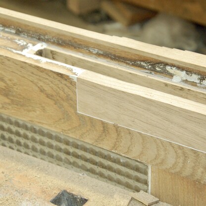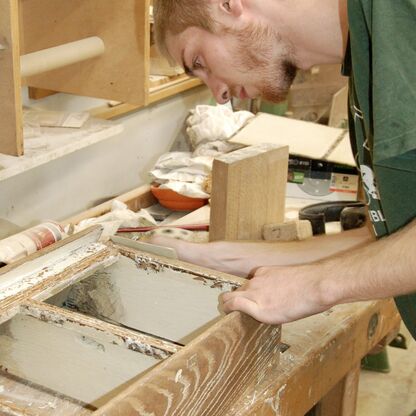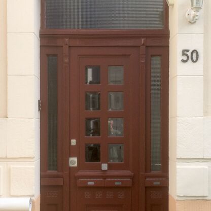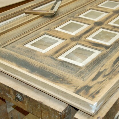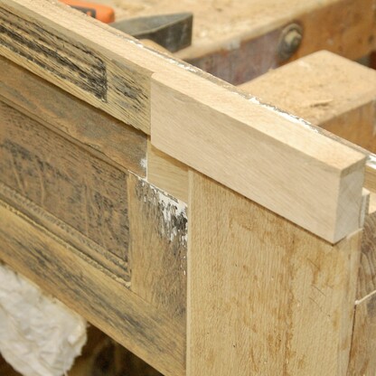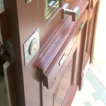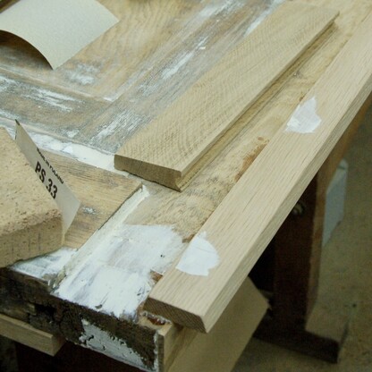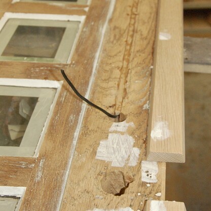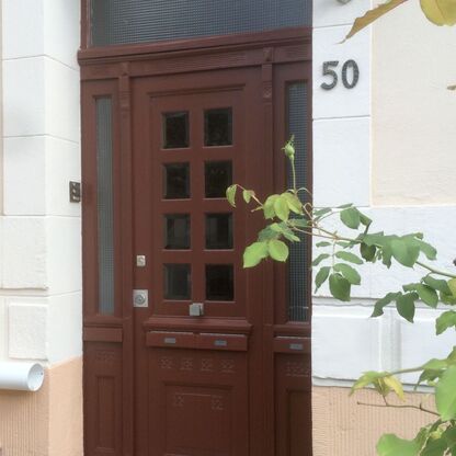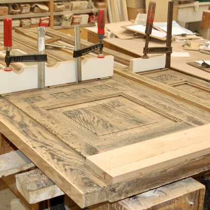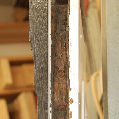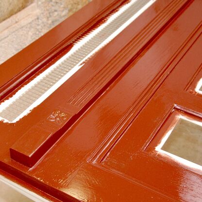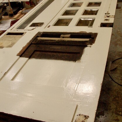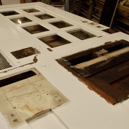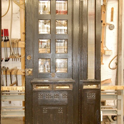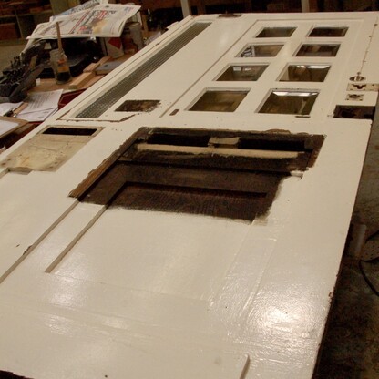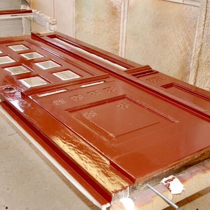 Begleiten Sie uns in der Bildergalerie durch die einzelnen Arbeitsschritte der Restaurierung der Haustür - von der Demontage bis zum Wiedereinbau.