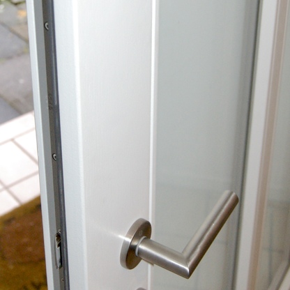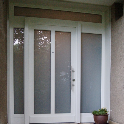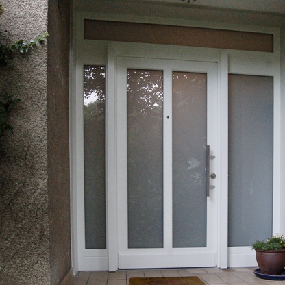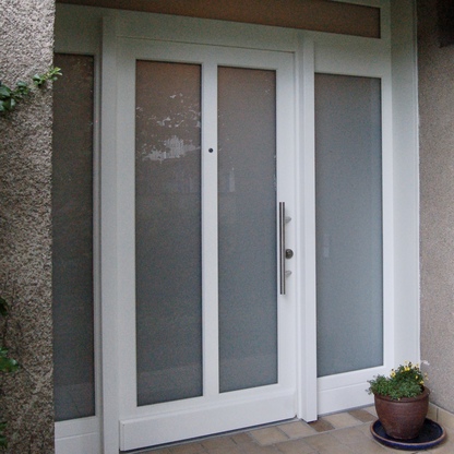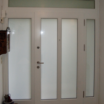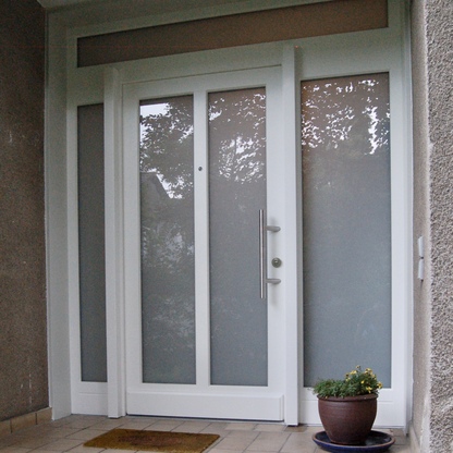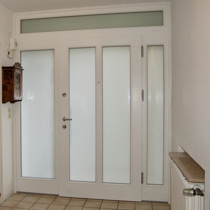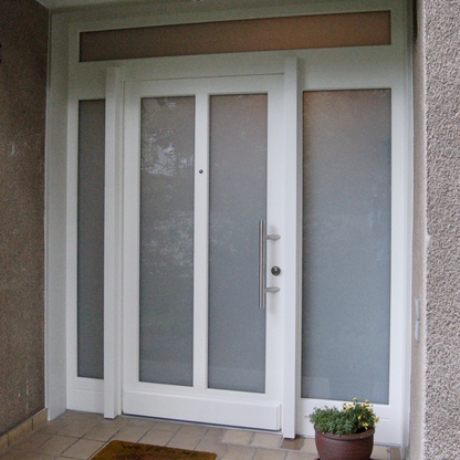 Haustürelement aus massivem Merantiholz, Oberfläche deckend weiß endbehandelt