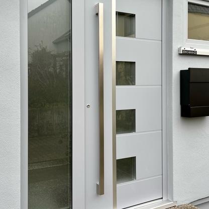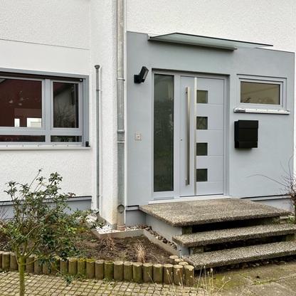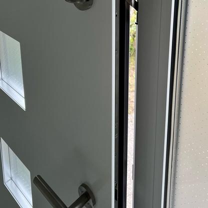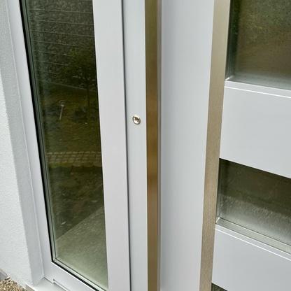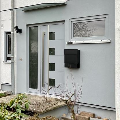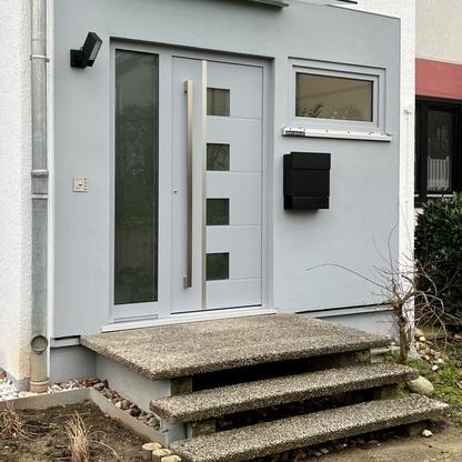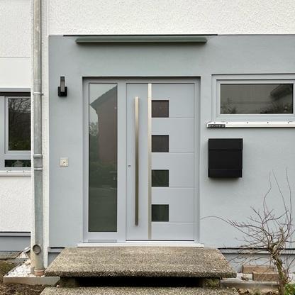 Haustürelement aus Aluminium, Oberfläche RAL 7040 deckend beschichtet