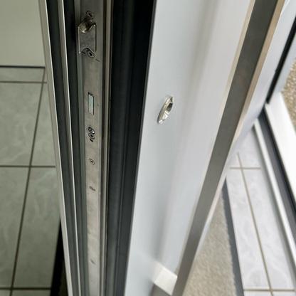 • im Flügelrahmen eingearbeitete Türspaltverriegelung
