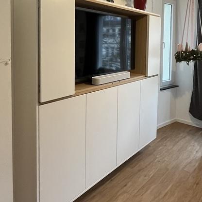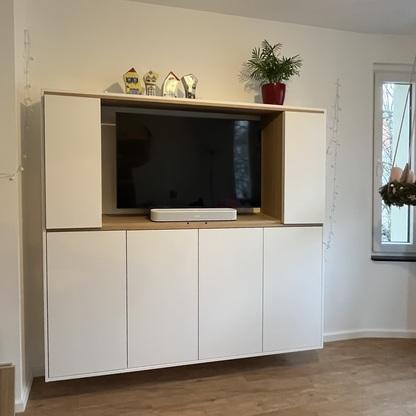• Möglichkeit 1: TV-Bereich geschlossen -> seitlich 2 offene Regale